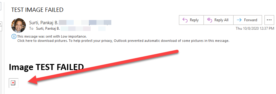 Result image was rendered in outlook client