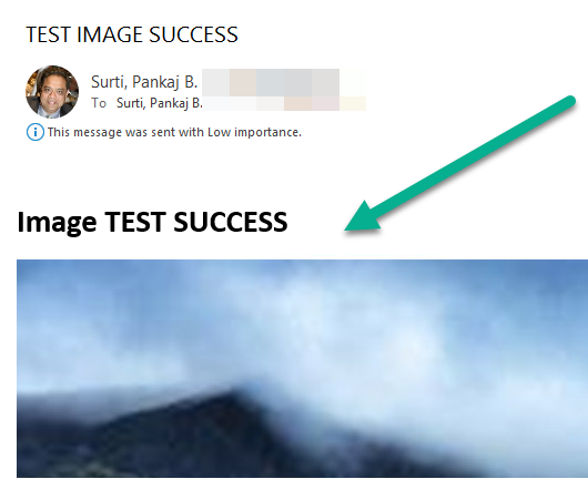 Result image was rendered in outlook client