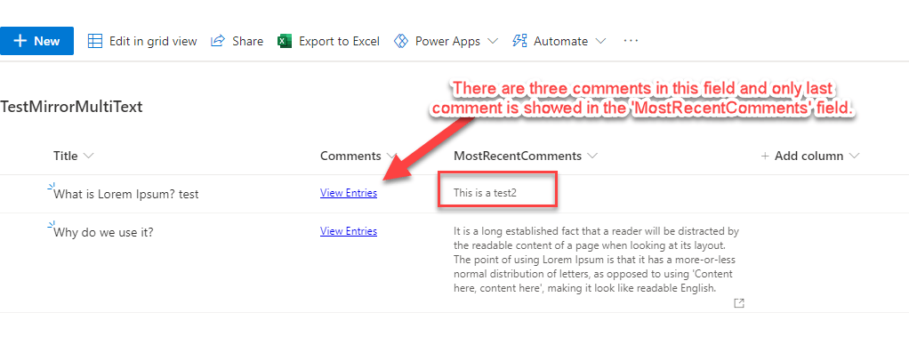 As my previous blog post on the same topic, what if there is an existing list which has the multi text ‘Comments’ field.