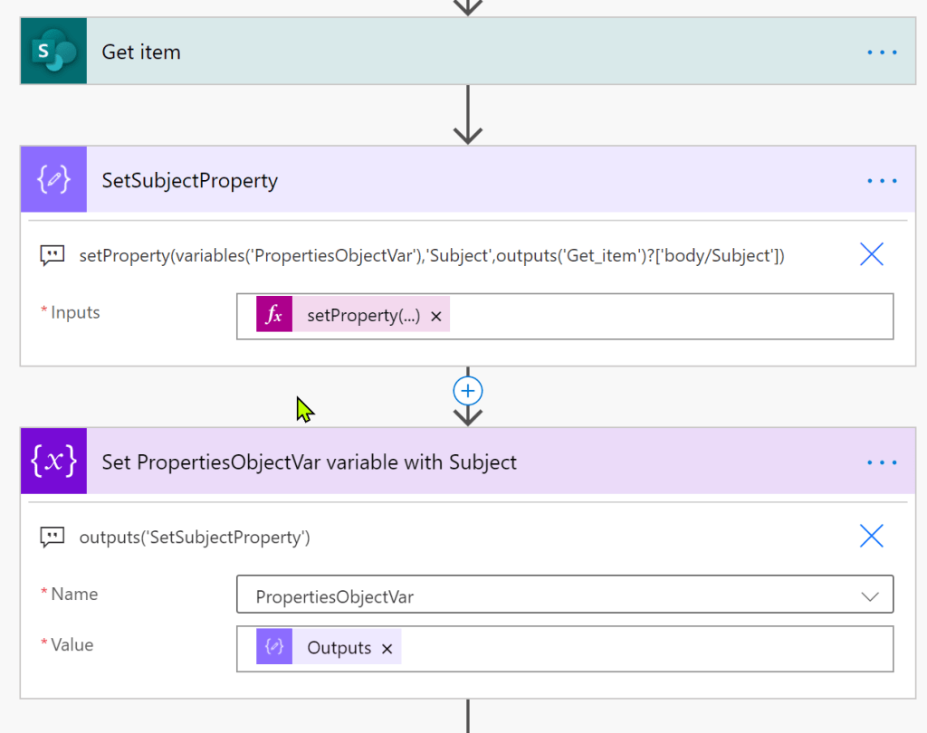 IMPORTANT: The ‘Set Variable’ action does not allow self reference, in other words you can not do Index = Index + 1. See here for the details. The alternative approach is to use the Compose action to manipulate the variable value and then assign the output of the Compose in the Set Variable.