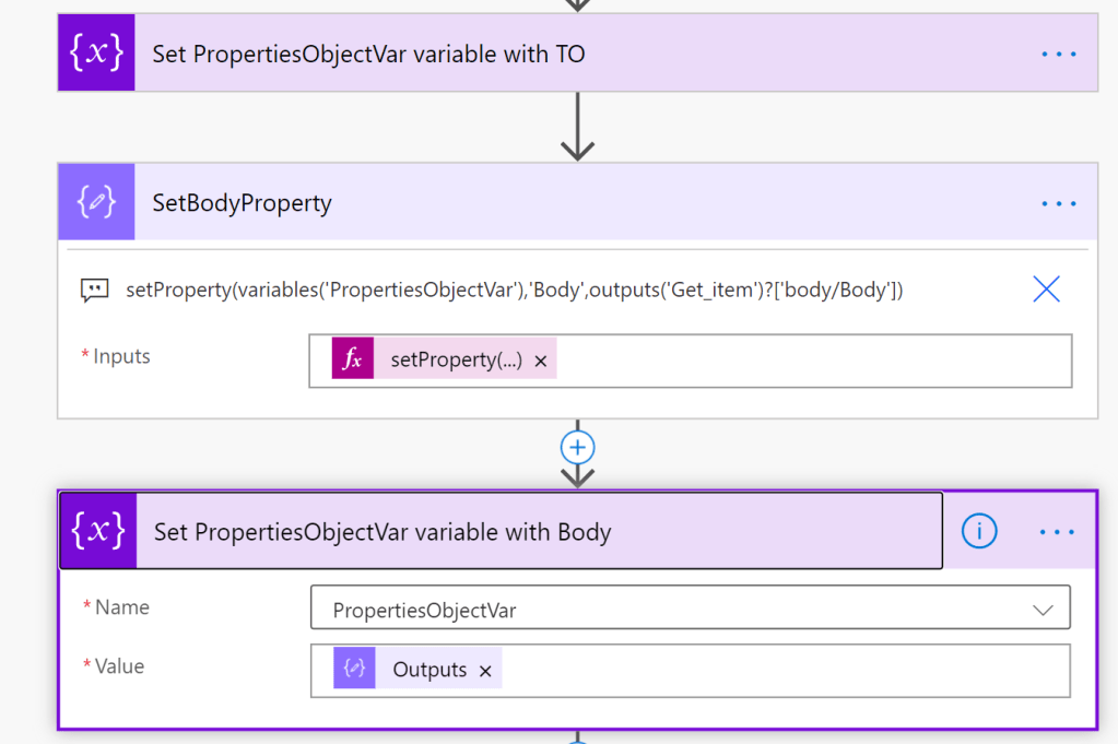 Note: The 'PropertiesObjectVar' variable will have 'Subject' and 'To', the following call with add 'Body'
