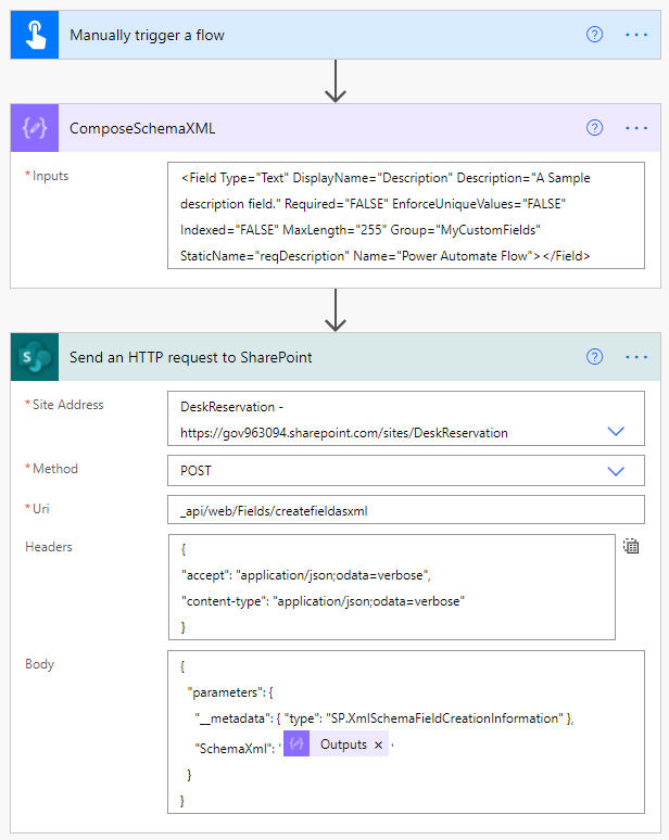 "SchemaXml": '@{outputs('ComposeSchemaXML')}'