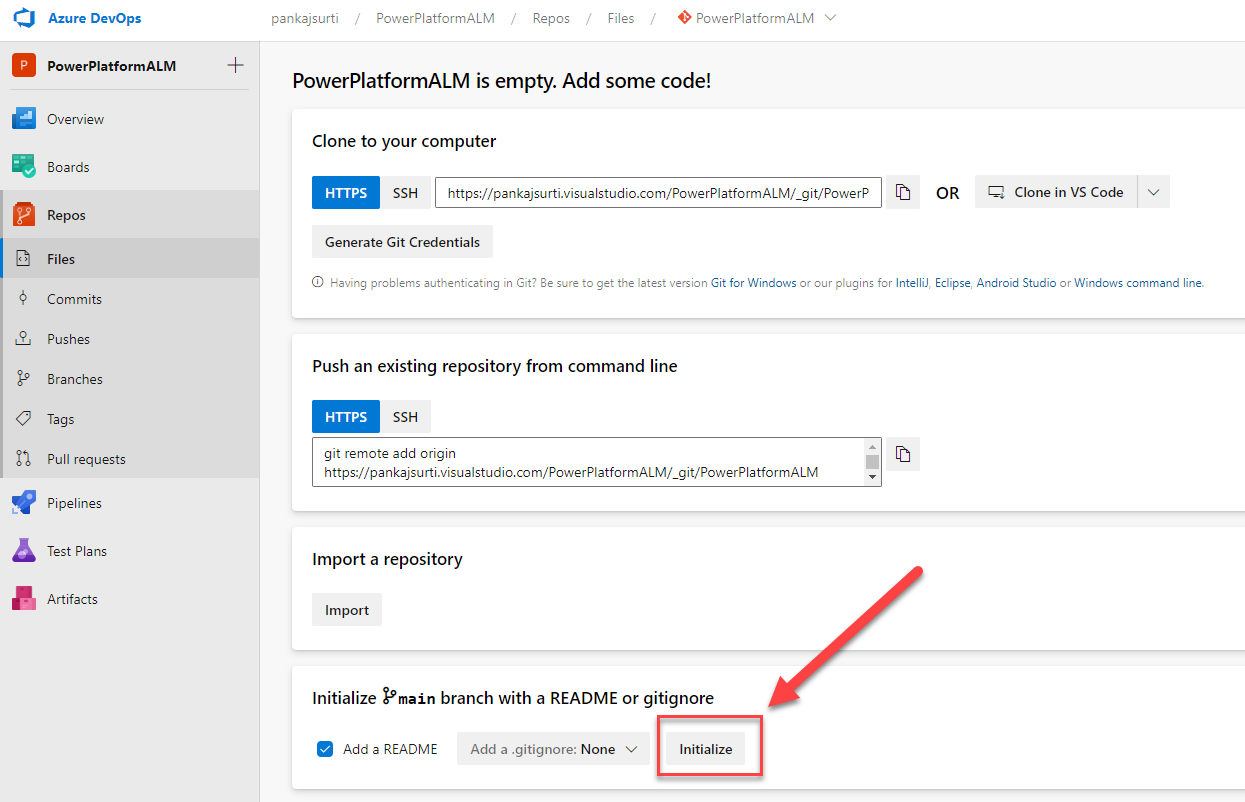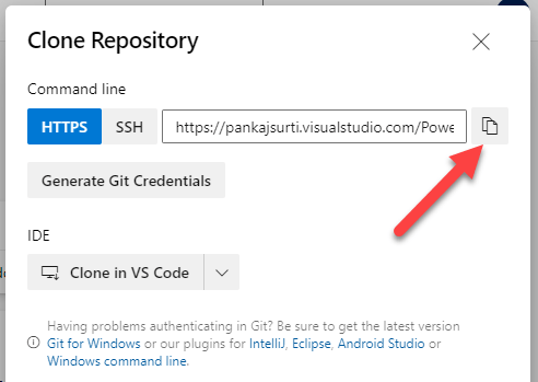 C:\SharePointDev\PowerPlatformALM>git clone {Your Clone repo URL}