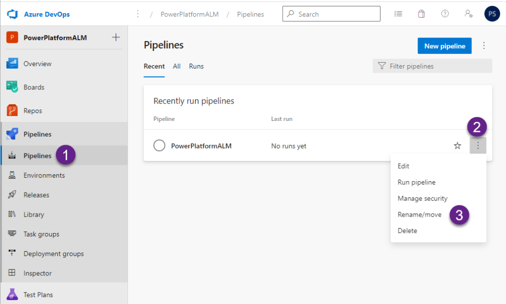 - Run the pipeline if it is not running already. (This action will make the Solution available in the Test Environments)