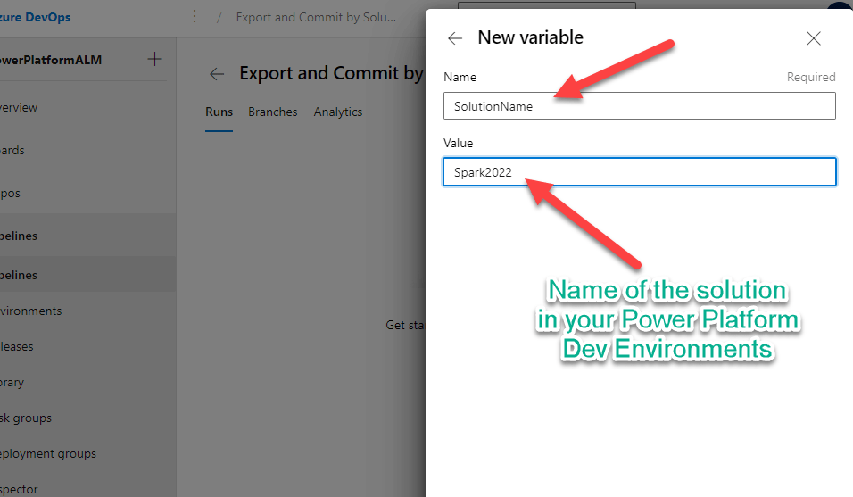 - Note: you need to add a SolutionName=LaptopInventory variable before running the pipeline