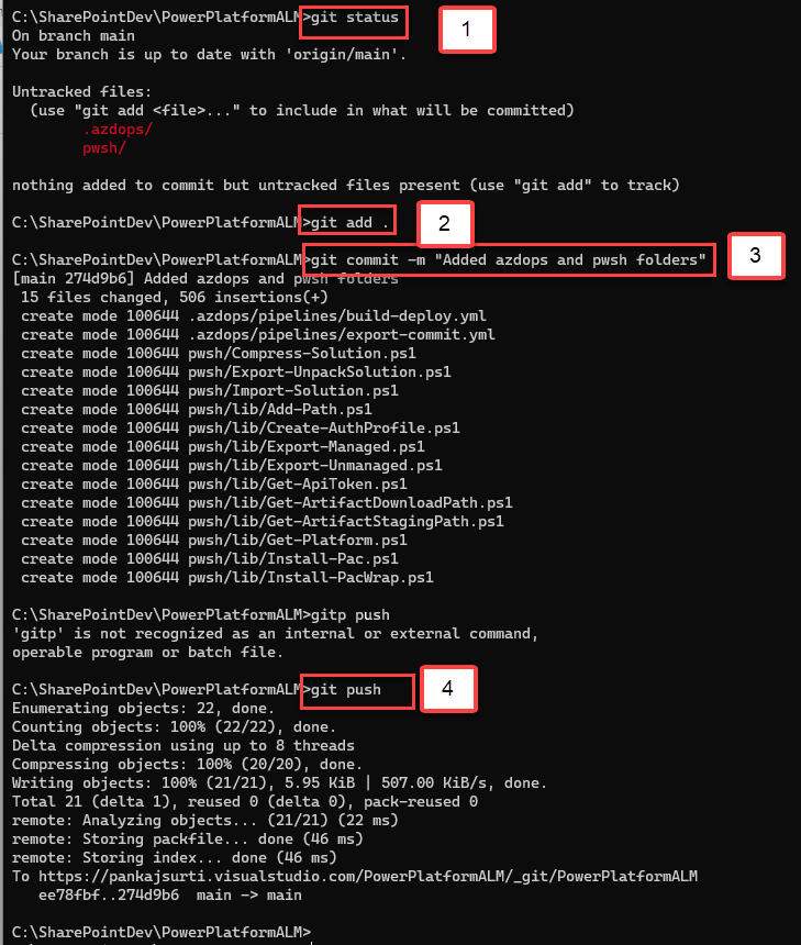 Step # 5 Using the following Git commands push the changed code to the Azure DevOps repo.