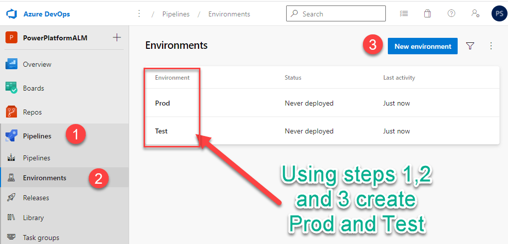 Step # 7 Define Test and Prod Azure DevOps Environments