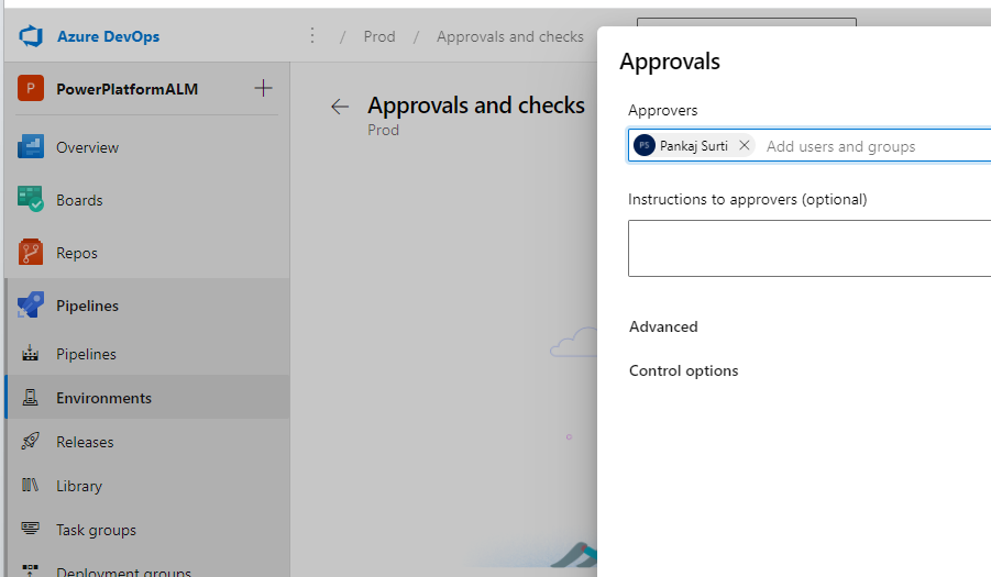 For the prod environment, (optional) add the approval settings. Assign one or more approvers.