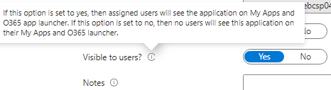 If you hover over the text it clearly states that if this flag is set to no means everyone will be able to see the app in the myapps.microsoft.com portal. This can be more educated to the customer to not to set as No because now the app is presence is available to everyone in the tenant.