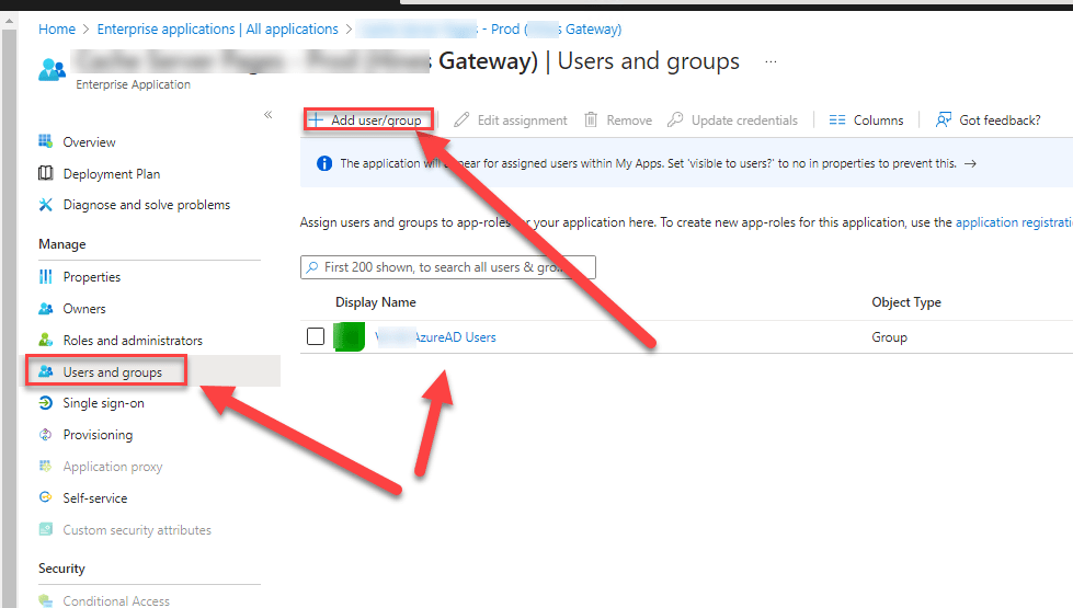 To control this application the customer can now add “User and groups”. Only those users or member of groups will be able to see the apps in myapps.microsoft.com portal.