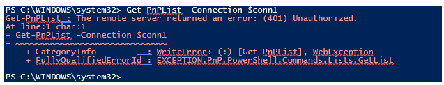Get-PnPList : The remote server returned an error: (401) Unauthorized.